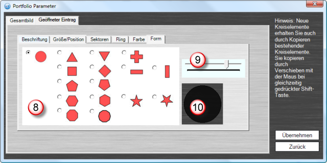 In den Portfolio-Parametern gibt es unter "Geöffneter Eintrag" die Rubrik "Form":
