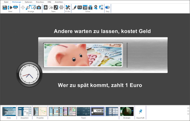 Die meineZIELE Konferenzuhr kann als Bestandteil der Testversion von meineZIELE