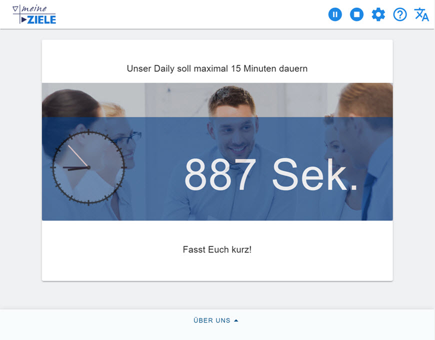 aktuellem Browser. Die Cloud-Version hat alle Funktionen der meineZIELE Konferenzuhr