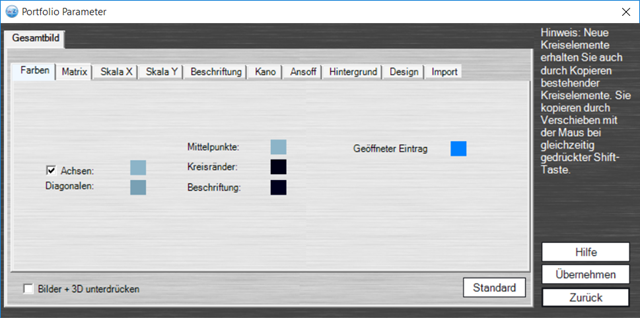 Hier können Sie die Farben der Achsen, der Kreisränder und -mittpunkte etc. ändern.