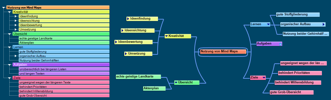 Mind Maps sind wertvolle Hilfen für Verständnis, Gedächtnis, Strukturierung, Kreativität und noch einiges andere. Dieser Text war ursprünglich mal ein Buchtipp: "Das Mind-Map Buch" (Amazon Affiliate Link) ist ein guter Einstieg in dieses Thema.